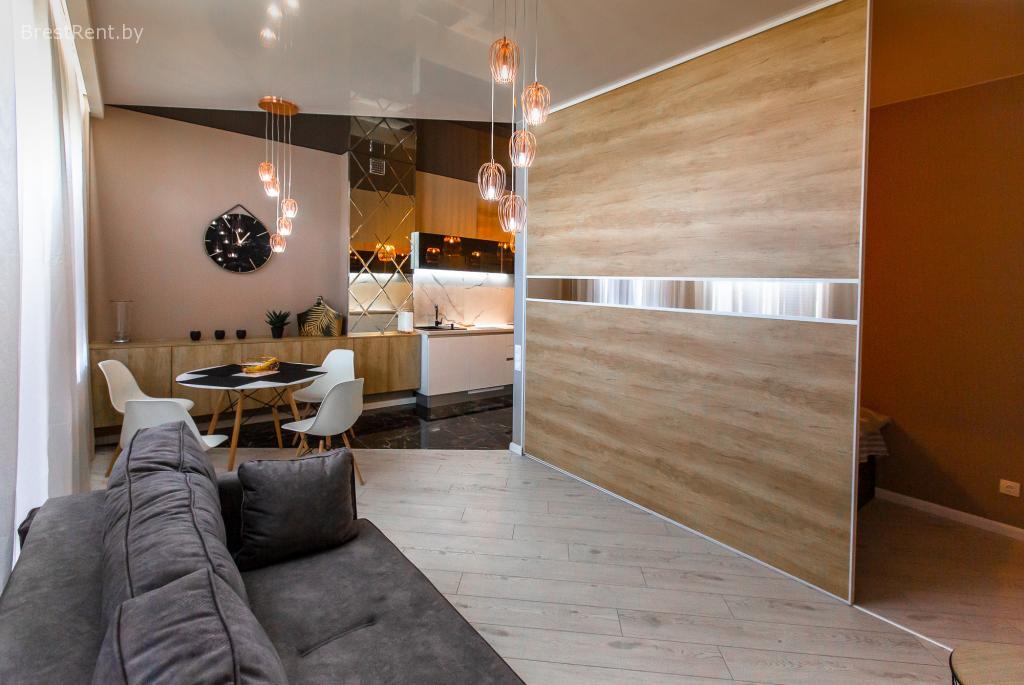 Гостям доступна большая удобная гостиная с большим плоским ЖК телевизором, кухней, диваном, обеденным столом и выходом на балкон. Отдельно спальная комната с большой двуспальной кроватью. Эксклюзивные Апартаменты с французским балконом в самом центре Бреста, в 10метрах от знаменитой пешеходной улицы Советской. Эта излюбленная горожанами и туристами улица привлекает бесчисленными кафе, ресторанами, кондитерскими, магазинами, сувенирными лавками, а также выступлениями уличных артистов и музыкантов. В этот район водят экскурсии, а вы сможете тут жить!
