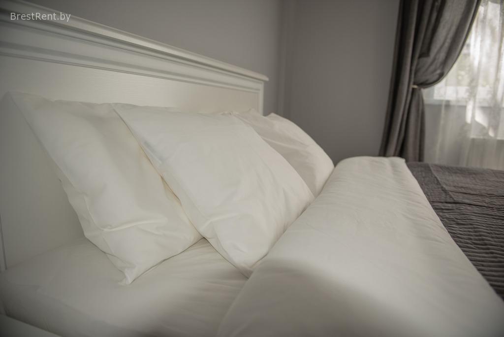 В апартаментах имеются одна двуспальная кровать (в спальне №1) и двуспальный диван – кровать (гостиная), две односпальные кровати (спальня № 2). Гостям предоставляется постельное белье, полотенца. Вы сможете пользоваться полностью оборудованной кухней (холодильник, газовая плита, микроволновка, чайник, посудомоечная машина, посуда). В ванной комнате для Вас стиральная машина, фен, утюг, гладильная доска.
