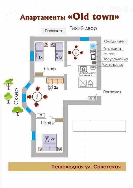 - Апартаменты расположены в центре на пешеходной улице
